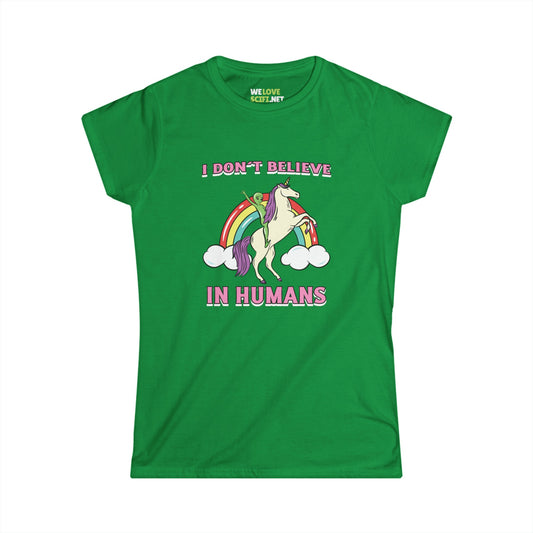 I Don't Believe In Humans Funny Unicorn Alien Woman's Tee